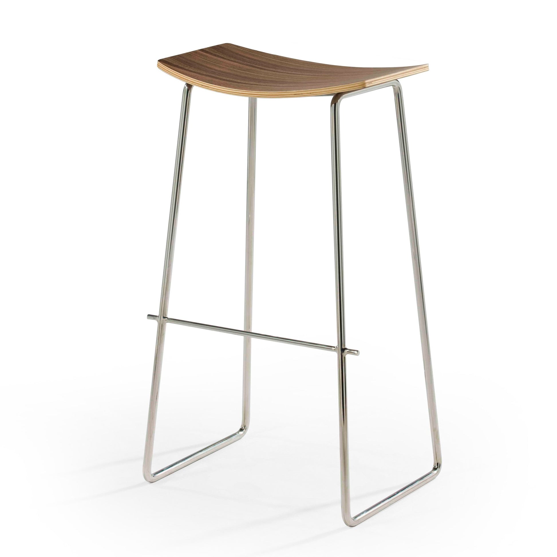 Aeon Furniture's Timber Barstool boast a concave seat in a classic American Walnut veneer finish that upon a slender sleek base constructed from durable polished steel. The built-in footrest adds to the comfort of this piece while complementing the impeccable minimalist design.
